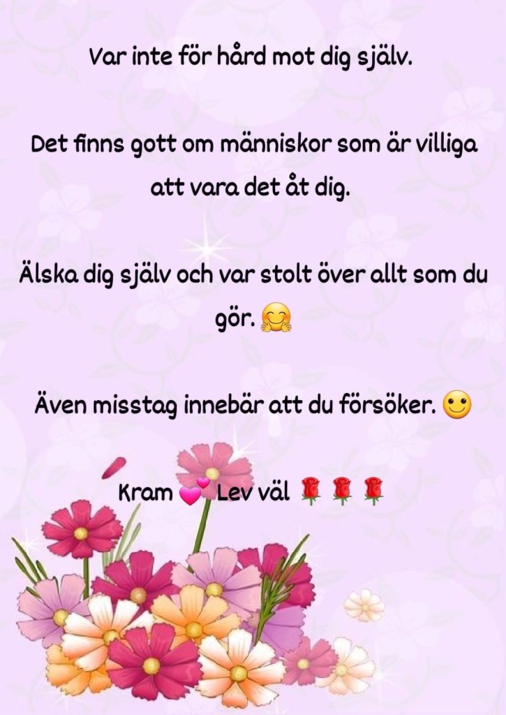 Det här inlägget i stort…med lite redigeringar nu….publicerades på FB den 15 juni 2021….Men jag anser att det är lika aktuellt och viktigt idag….som det var då….och kommer alltid att fortsätta vara. Så därför vill jag även ha med det här i min Blogg…Ja…och jag är som jag är…. Det blev en del tillägg och ändringar…och längre och längre….🙈😁 Men jag ska försöka att bättra mig… men jag kan inte lova att jag lyckas…🤣❤️