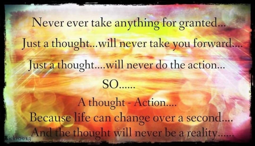 Morgondagen kan man ju faktiskt inte veta så mycket om. Man vet vad man har planerat in och vad som kanske ska ske. Men du vet det inte….förräns just imorgon….i morgondagens ”nu”. Då ser och märker du vad som händer. För livet kan förändras så snabbt….ibland snabbare än en blinkning eller ett andetag. Det enda som du egentligen vet någonting om, är det som har hänt….och det som sker just i stunden…I NUET!!