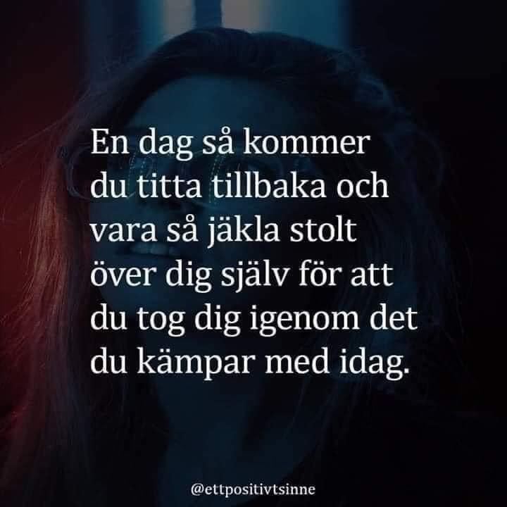MEN….”SYNS JAG….HÖRS JAG….DÅ FINNS JAG”! DÅ HAR DU KOMMIT SÅ LÅNGT….JA DÅ ÄR DU INTE RÄDD LÄNGRE….DU GÅR STOLT, STARK OCH RAKRYGGAD IGENOM LIVET. DET ÄR DIT DU SKALL KOMMA TILL SLUT. OCH DET KOMMER DU ATT GÖRA….EN DAG. HA INTE BRÅTTOM….GE DIG SJÄLV DEN TIDEN SOM BEHÖVS….OCH DU KOMMER ATT HITTA RÄTT. OCH DU KOMMER ATT HITTA DIG SJÄLV IGEN. KANSKE INTE DEN DU EN GÅNG VAR….UTAN ÄNNU BÄTTRE! KLOKARE, STARKARE, STOLTARE OCH MYCKET LYCKLIGARE! 🙏🏻💪🏻❤️